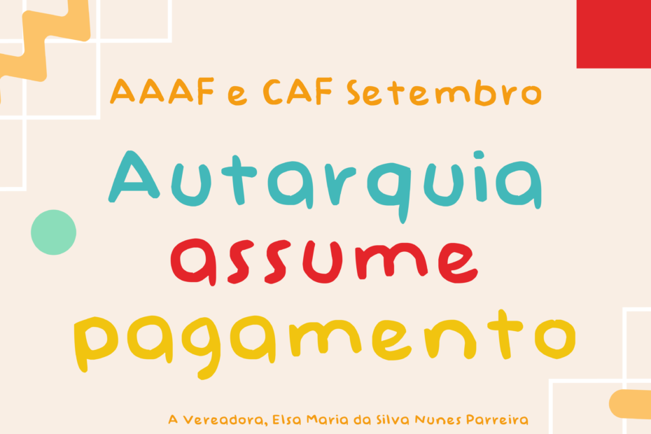 Estamos, pois, a encetar todos os esforços para que os constrangimentos que se têm feito sentir nesta fase inicial sejam superados e é com satisfação que lhe comunico que a autarquia assumirá o pagamento integral da frequência, no mês de setembro, das atividades de animação e apoio à família (AAAF) e da componente de apoio à família (CAF), agradecendo todas as sinalizações que nos têm feito chegar e que têm merecido e continuarão a merecer a nossa melhor atenção.